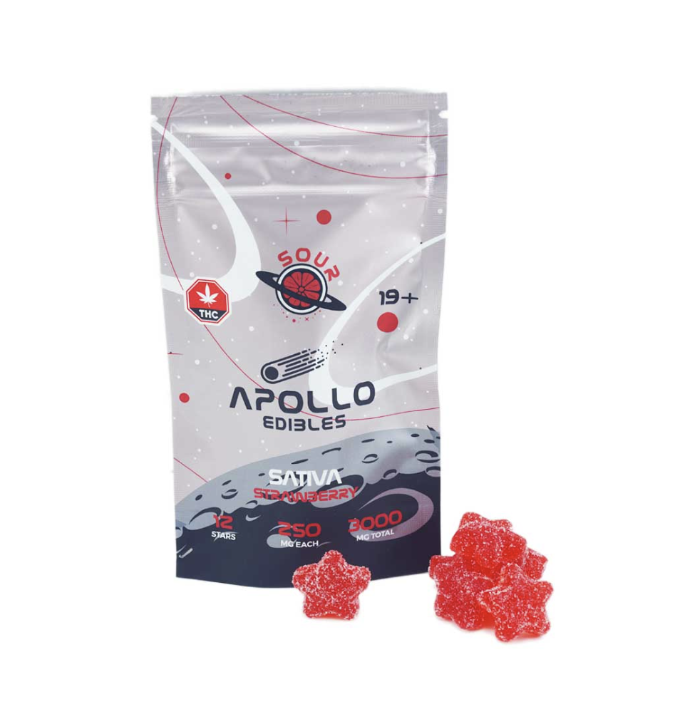 The Sativa dominant Apollo gummies promise an exhilarating euphoric experience. Ideal for those with medical conditions or anyone looking to uplift their mood, these gummies boast a vibrant new flavour in Cherry and are divisible into 5 pieces. These high strength treats cater to varying tolerance levels for experienced users, elevate your cannabis experience to new heights with Apollo Shooting Star Gummies in an extraordinary 3000mg dosage!