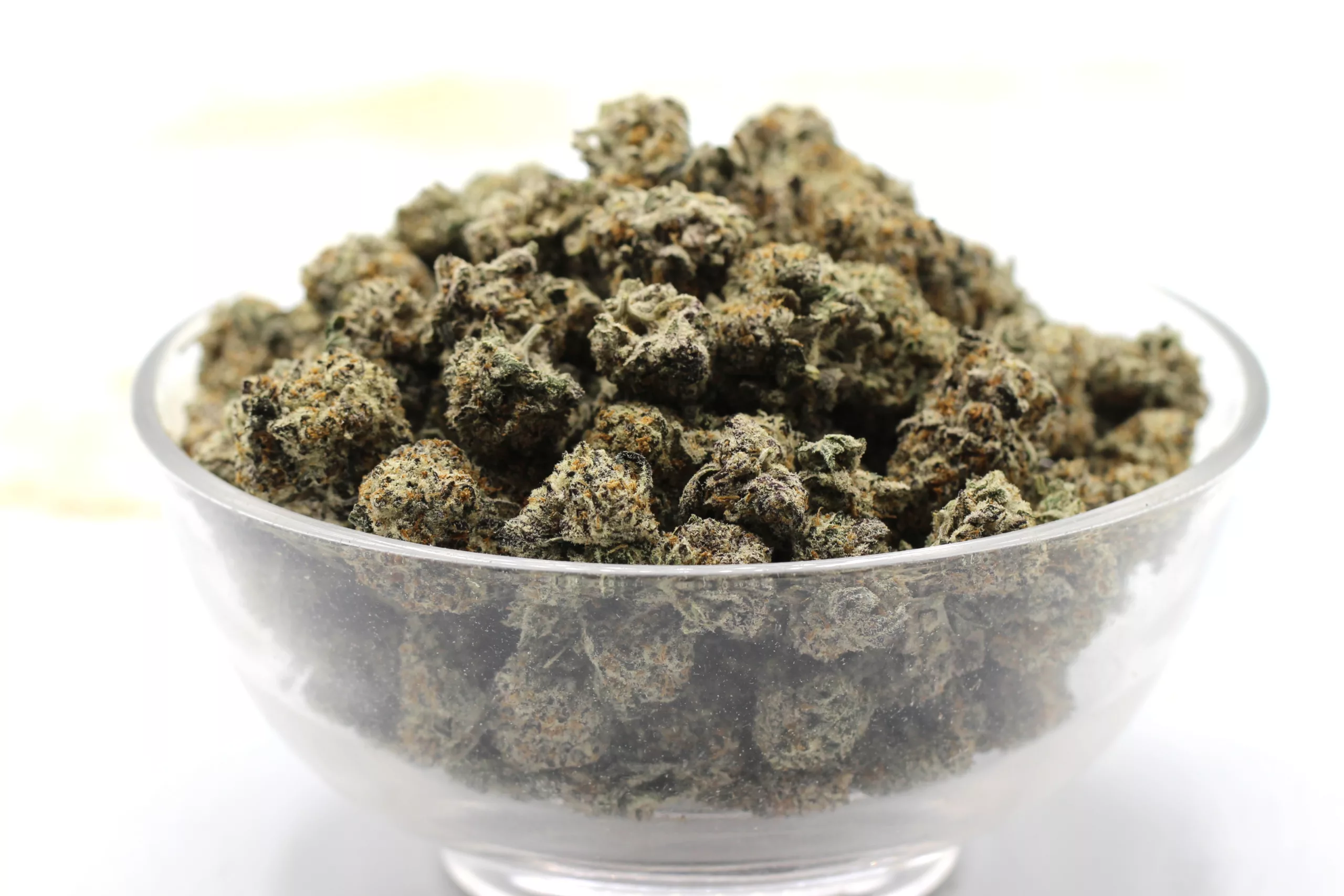 Blue Zkittlez is a super rare indica dominant hybrid strain created through crossing the potent Blue Diamond with the infamous Zkittlez strain. If you’re looking for an addictive flavor and lifted high, you’ve found it. Blue Zkittlez brings on the mouthwatering taste with sweet candy and citrus accented by fresh berries and a touch of savory diesel. The aroma is just as intoxicating, with rich diesel and earth accented by fresh fruity berries. The Blue Zkittlez high has a subtle build, sneaking up on you well after you finish your last exhale, working its way behind the eyes and leaving you slightly light-headed and tingly. This buzzy effect will soon start to ebb throughout the rest of your body, leaving you insanely relaxed and pretty aroused at times. Many users do fall asleep at this point, especially if they’ve taken a few hits of this tasty lady. With these effects and its super high 20% + average THC level, Blue Zkittlez is said to be perfect for treating conditions such as depression, headaches, chronic pain, stress, and arthritis. Blue Zkittlez buds have dense tight olive green nugs with rich amber undertones and matching crystal trichomes.