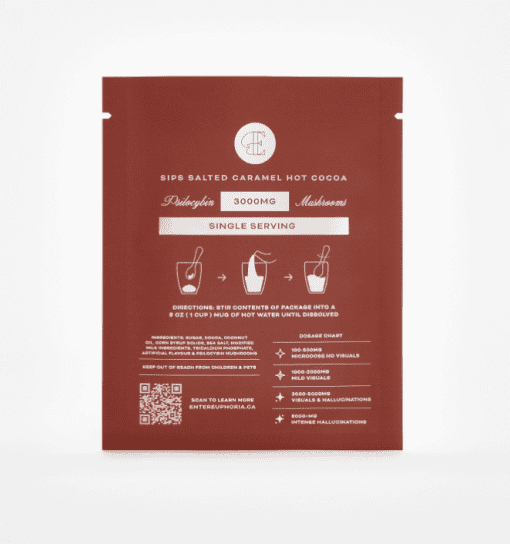 Taking cozy to a whole new level. We didn’t forget the marshmallows! Enjoy in a mug and enjoy the trip. For best results, finish the full drink within 20-30 mins and allow the effects to sink in . Our Euphoria Sips Cocoa comes in a single serving packet that’s toasty and way better than Starbucks. This psilocybin mushroom-infused drink will bring you into your own state of euphoria in the most chill way possible. We make even mushrooms taste *chef’s kiss*.